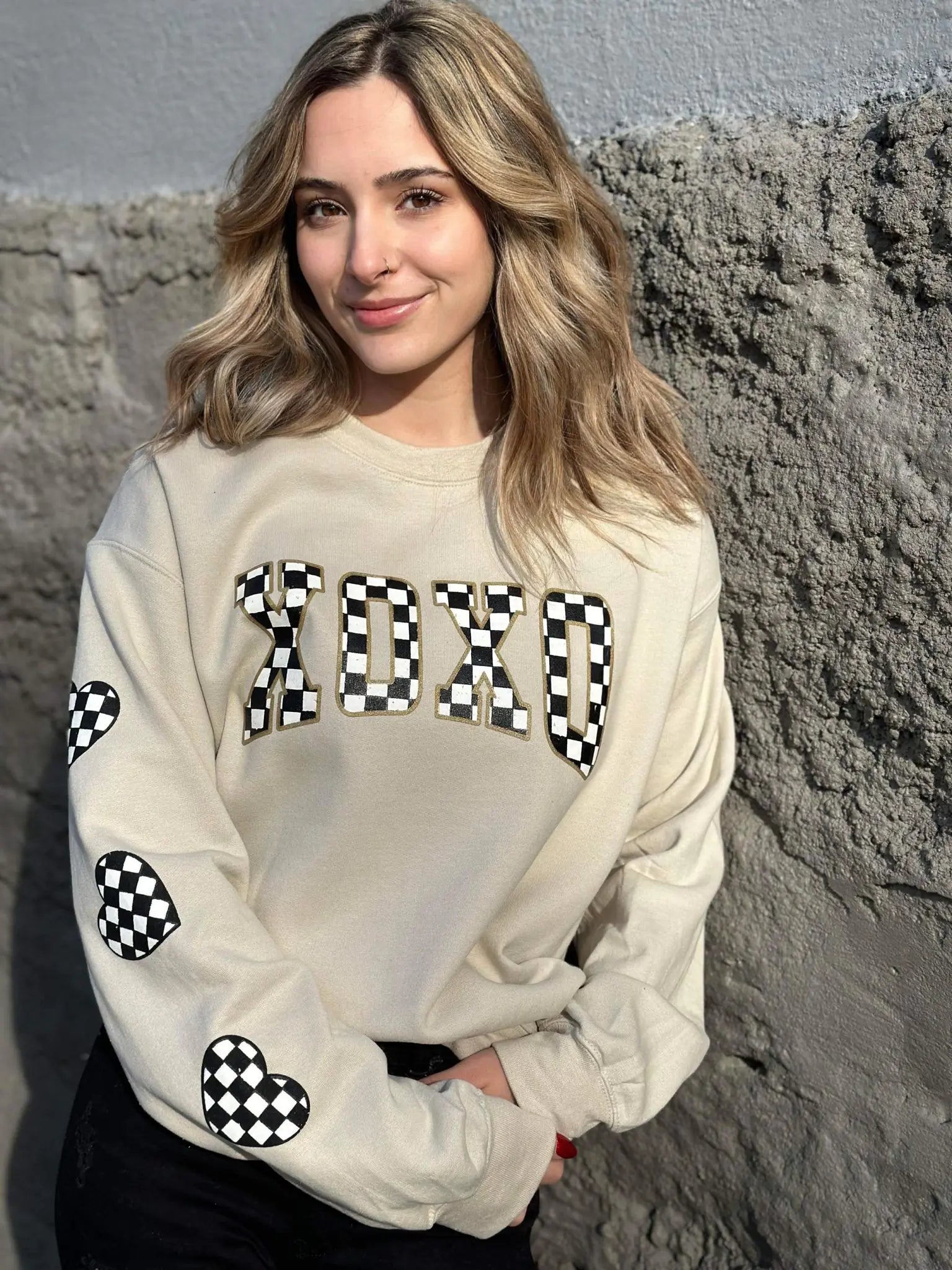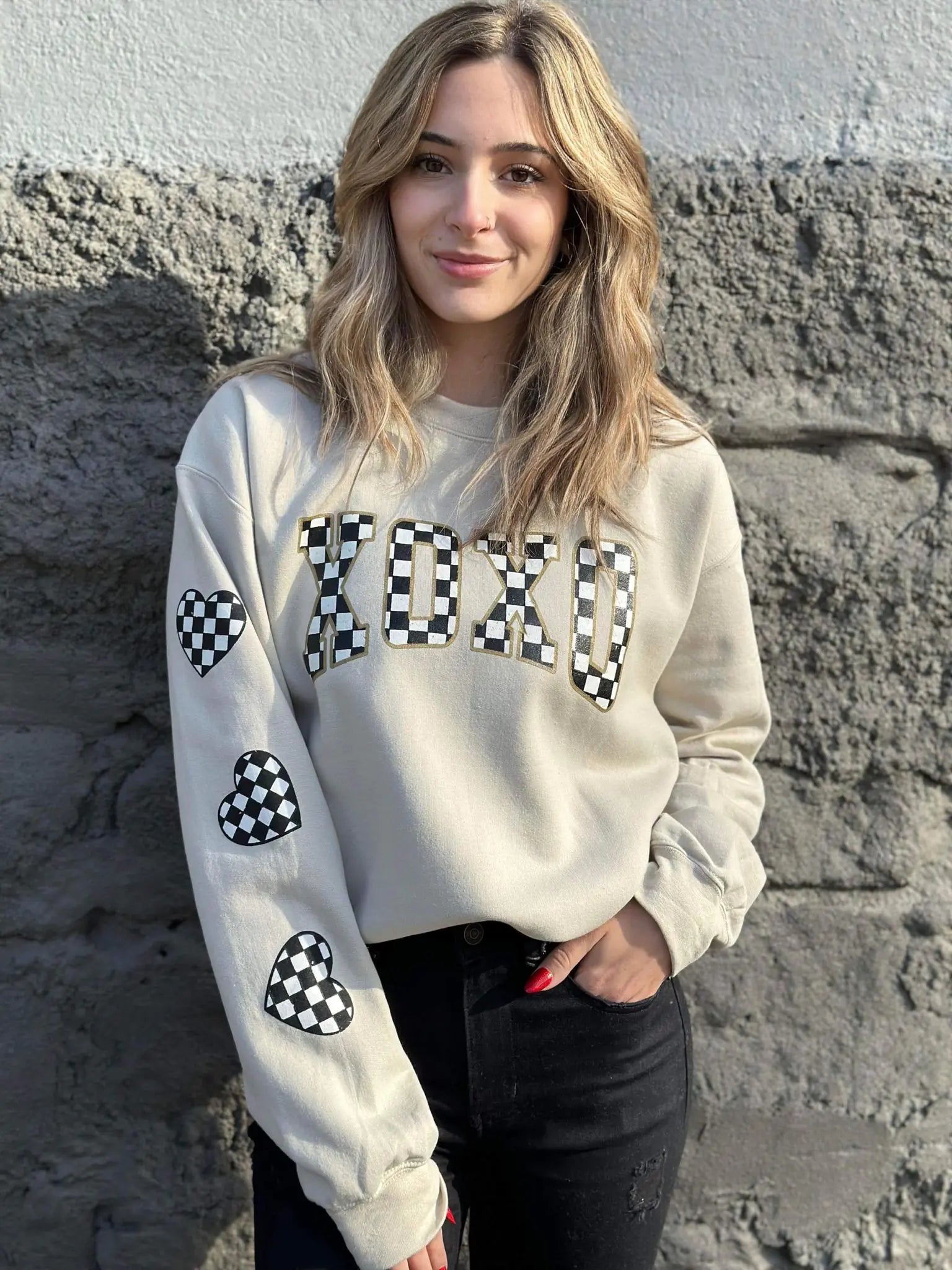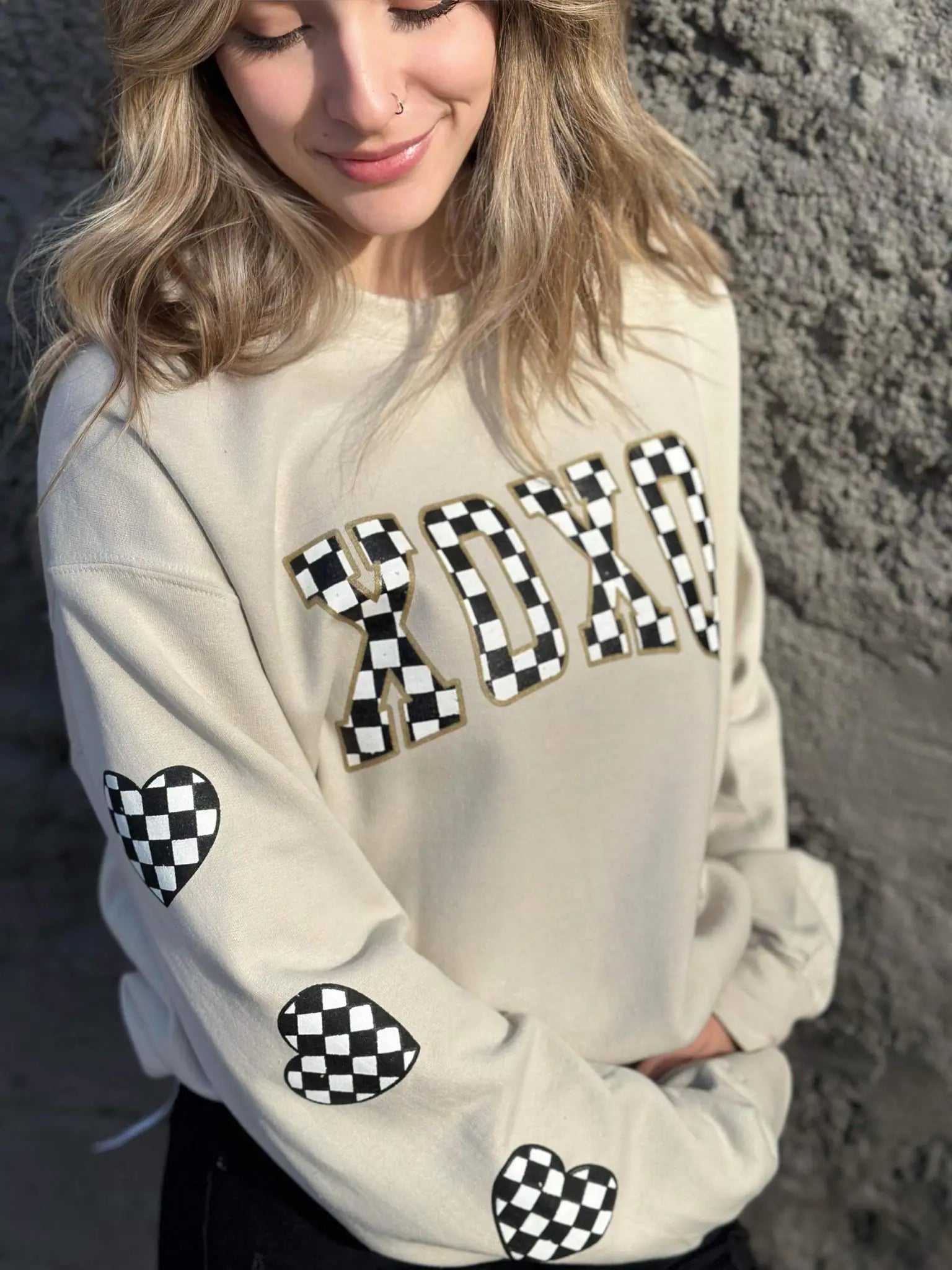 This one is for the non-traditional girlies out there!! This Valentine's Day you can be trendy AND cozy in this adorable checkered print sweatshirt! Oh, and the shimmer gold detail?? Stunningggg!