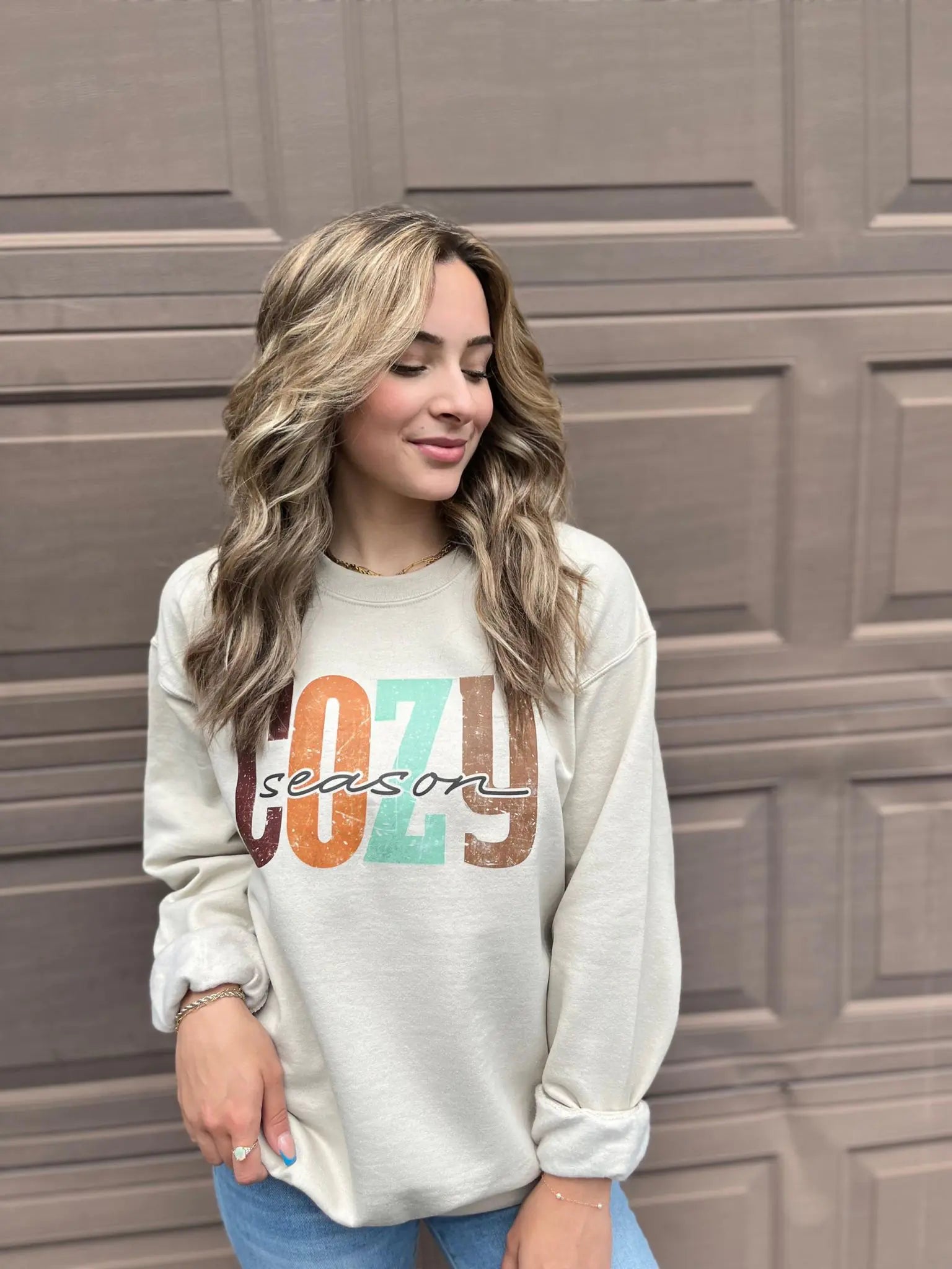 The perfect sweatshirt to keep you nice and cozy for the cozy season! We love the neutral tones on this one!