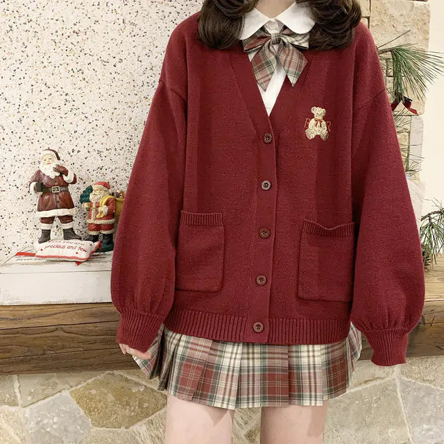 Cute Bear Embroidery Cardigan