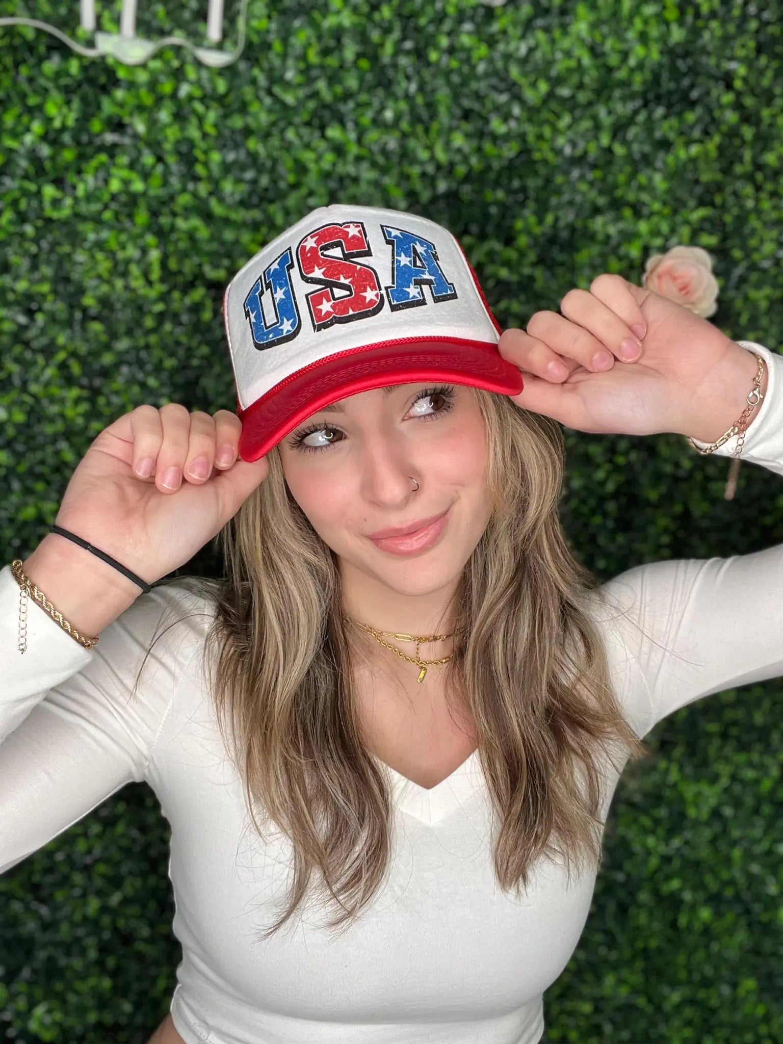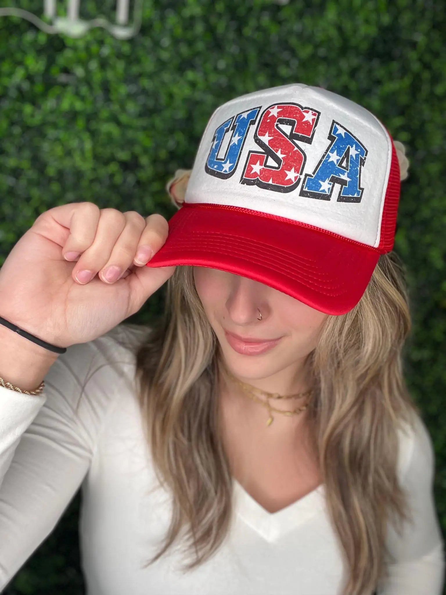 This hat is a total MUST have for any 4th of July event! The white star pattern on the red and blue?? A total serve.