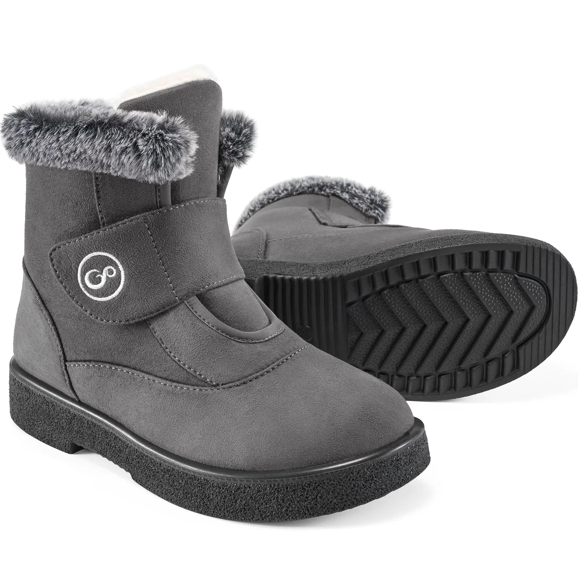 Reimferce Winter Ankle Snow Boots for Women: Grey 8.5 Warm Comfortable Fur Lined Womens Boots Anti Slip Walking Outdoor Ladies Boot