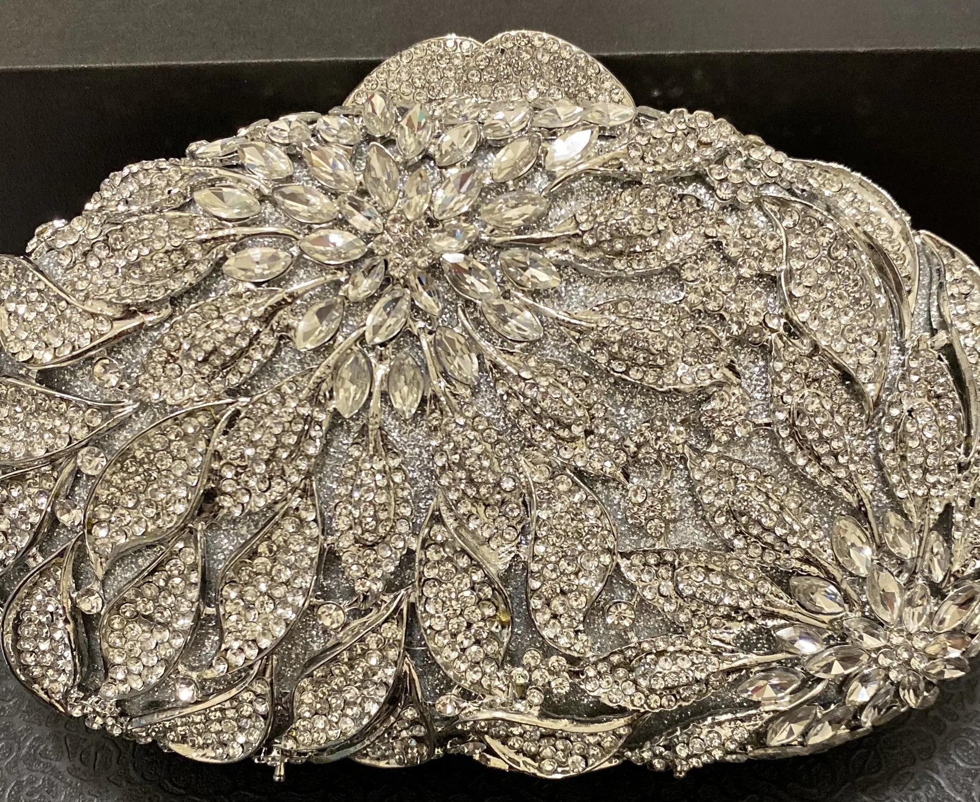 Crafted from high-quality, double-sided rhinestone, this clutch features a beautiful floral pattern that adds a touch of whimsy to your outfit. Measuring at a compact 18CM in length, 12CM in height, and 6CM in width, it is designed to hold all your essentials without compromising on style.