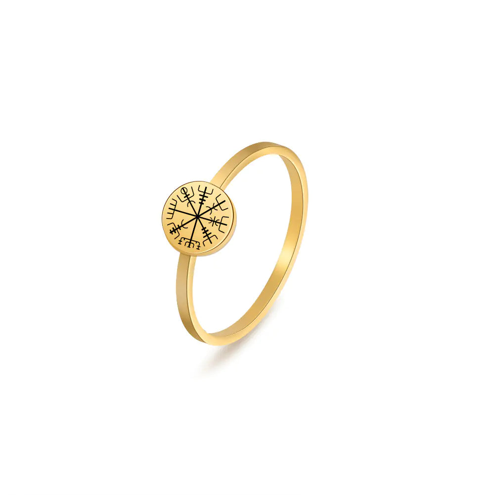 Viking Compass Stainless Steel Laser Engraved Ring