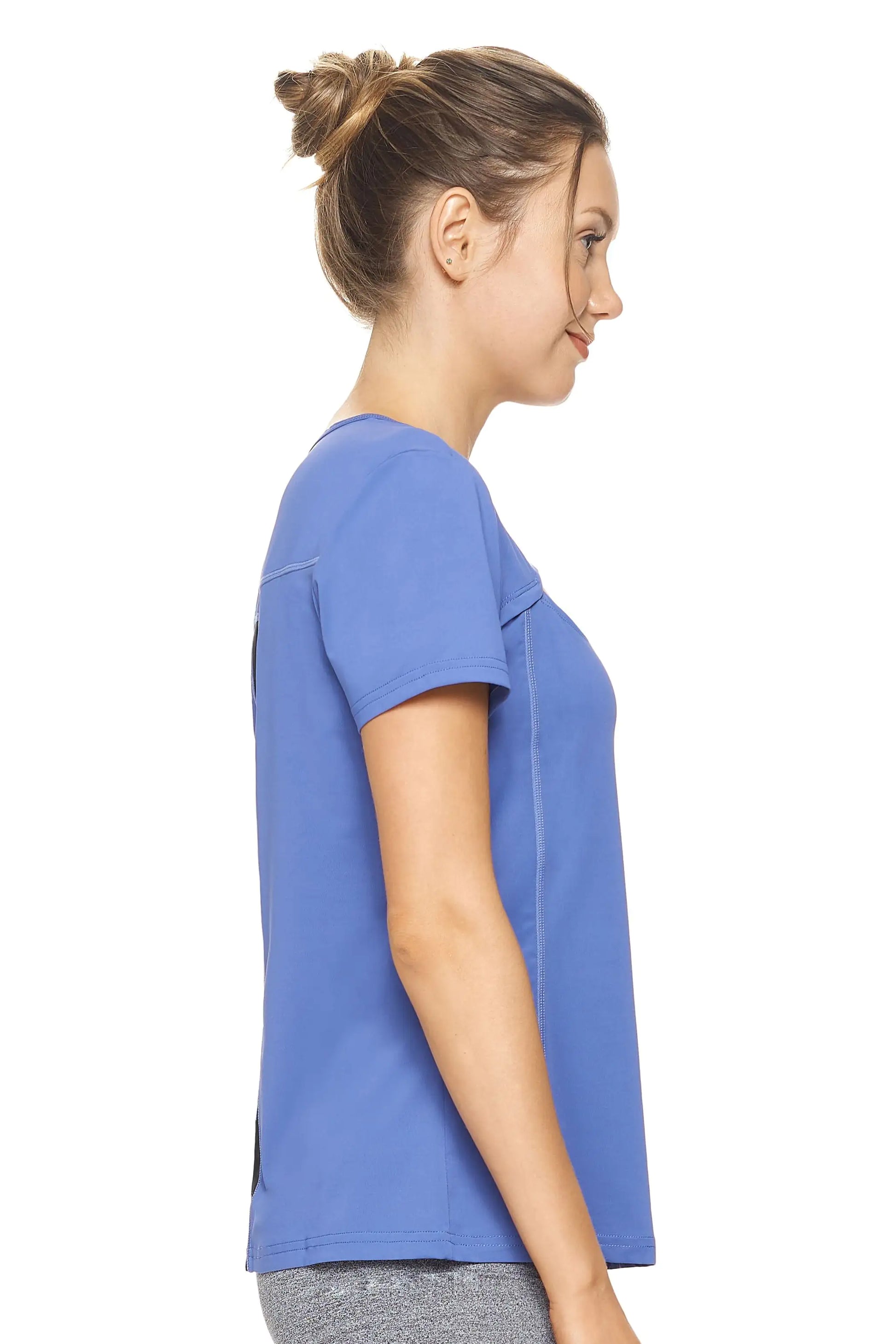 Meet your new cardio companion. Airstretch™ Lite is ultra soft, ultra-lux, and ultra cool to the touch. Stylish ventilation and a fluid fit adapts to the body regardless of routine. Built-in odor control and moisture-wicking fabric breathes with your flow to keep you feeling fresh without chemicals or finishing agents.